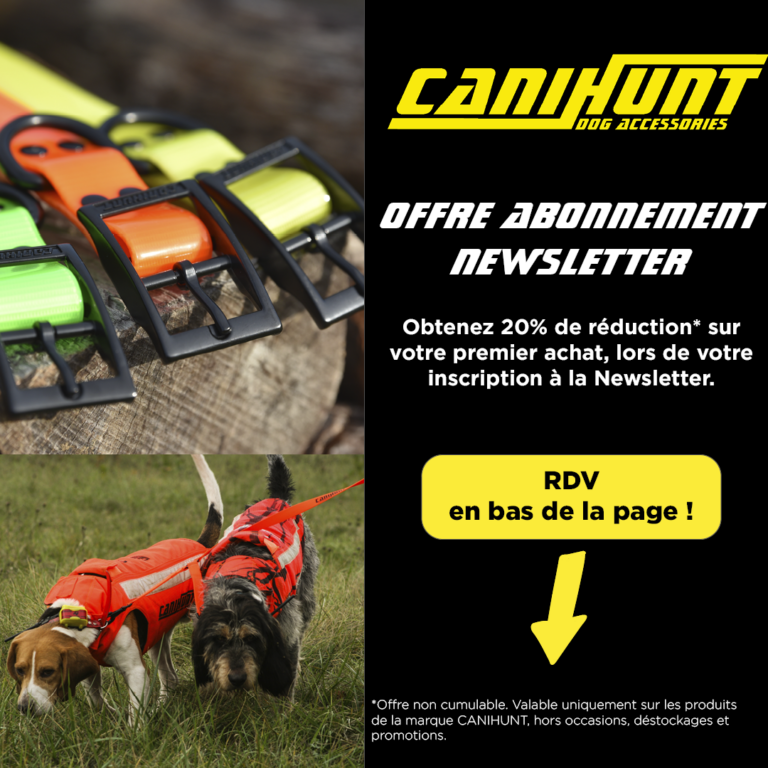 CANIHUNT propose une gamme complète d’accessoires pour l’équipement des chiens de chasse : gilets de protection, gilets de flottaison, laisses, colliers et autres accessoires.