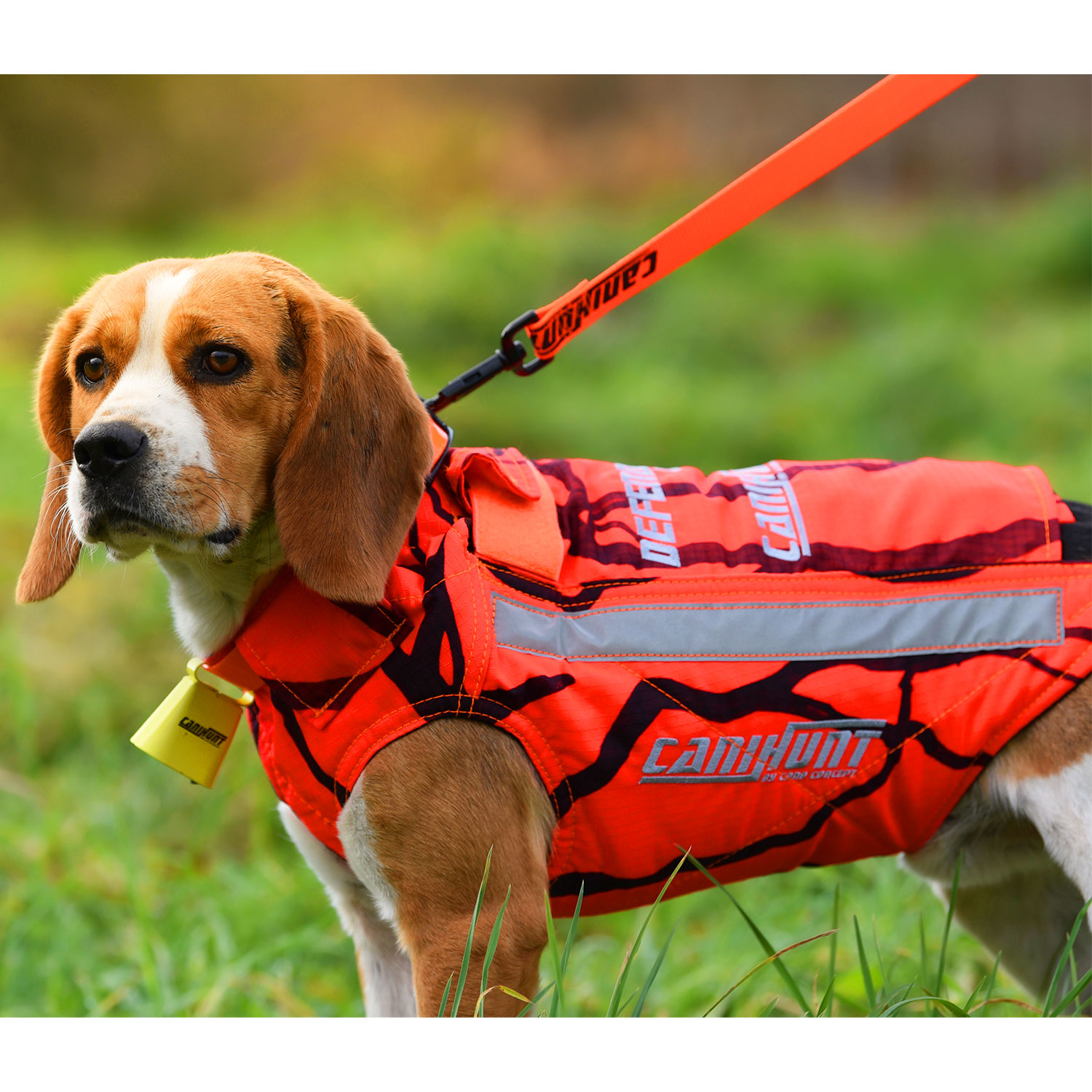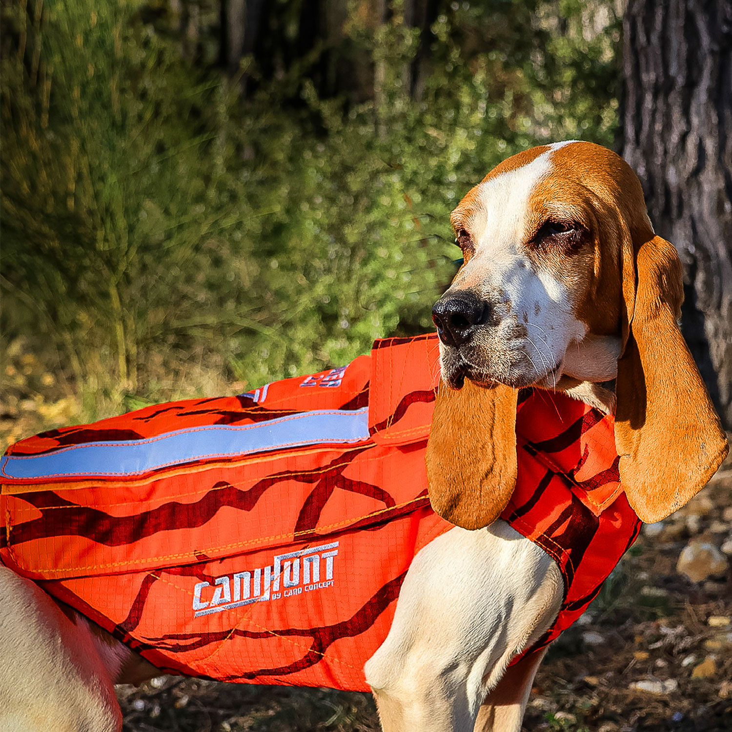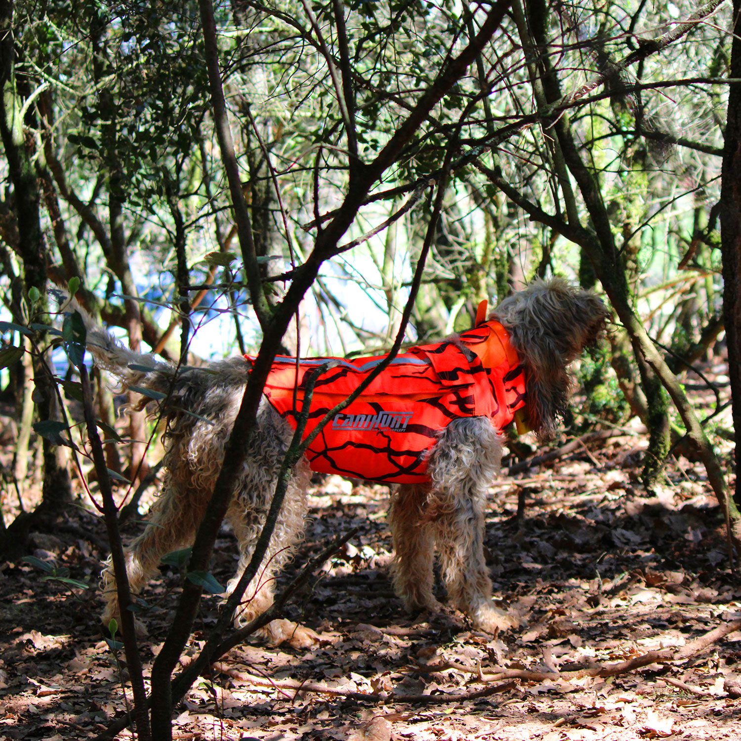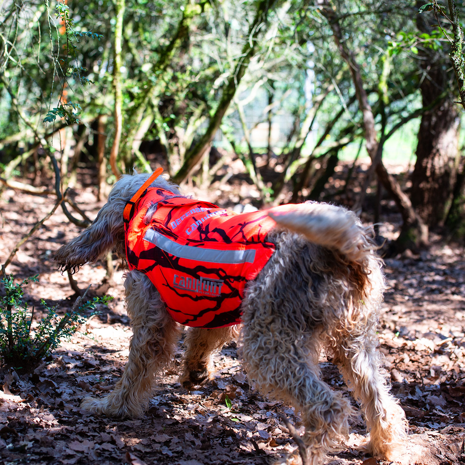 - Couleur orange fluo: Rend le chien visible durant une action de chasse mais il le signale également aux tiers (chasseurs, voitures etc.).